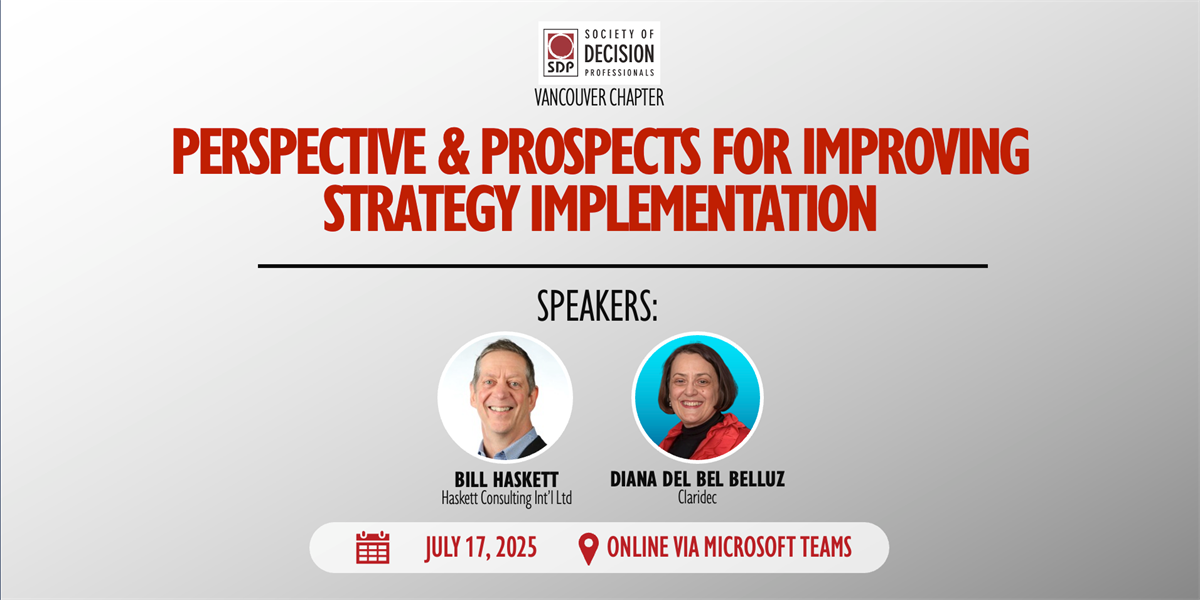 For July, Vancouver Chapter Members Diana Del Bel Belluz and Bill Haskett will present Perspectives and Prospects for Improving Strategy Implementation. Please share this calendar invite with anyone who may be interested.