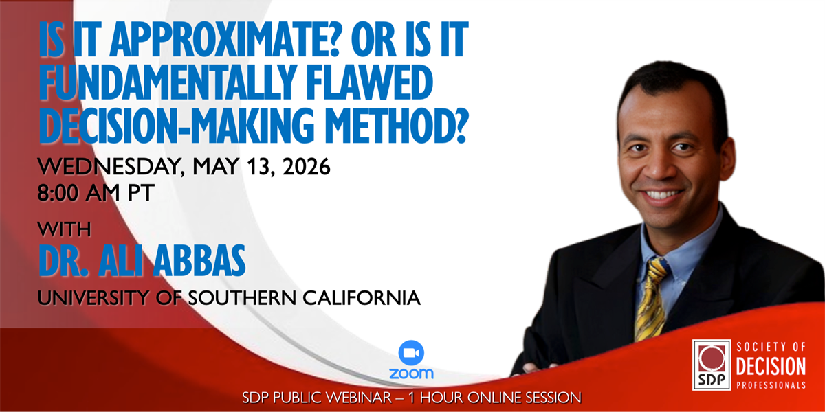 The objective of this talk is to help researchers, analysts, and practitioners distinguish between approximate and fundamentally flawed decision-making methods, especially when encountered in practice. A follow-up discussion in the member meet-up will invite both academics and practitioners to share perspectives on gaps in decision-making research that may benefit practitioners, as well its intersection with AI. The talk will also feature accessible excerpts from the forthcoming book Advanced Topics in Decision Analysis by Howard and Abbas.